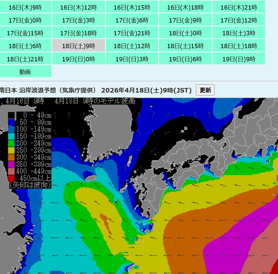 近海希望者2名様予約有り。(鷹島、津倉でもOK)近海は凪です!! http://www.k-ebisu.com/temp/2026-04-16%20151418.jpg 波予報、近海50p、宇治2〜3m |