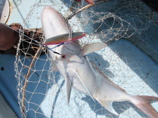 シャークアタック! 5キロほどのカンパチがズタズタ!! |