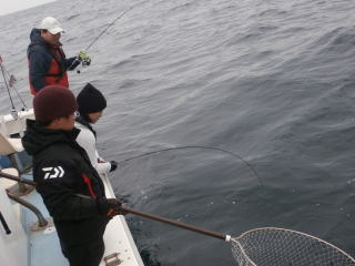 | 4月にこれほどシケが続くのは記録じゃないかなぁ〜? 真夏日になったかと思うと数日後には関東では雪、梅雨みたいな日がずーっと続いたり、ヒョウが降ったりと… HP更新している現在、4月も半分過ぎて宇治行けたのは1回だけ!!他の日はぜ〜んぶシケ。 この日もみなさん宇治希望だったのですが近場でもいいということで急遽鯛ラバ、インチクに変更してもらい根魚メインで近場へ。 ちなみに、この日の昼に草垣灯台は最高で東の風18mの強風!!でも、近場は全く問題無し。 この時期、近場はたま〜に鰤の回遊があるもののジギングのみで青物狙いはちょっと難しいですが水温もかなり上がってハタ類も釣れ始めます。 本日の天気予報で今年はエルニーニョ現象が起きそうだとか… そうすると梅雨入りが早まって、梅雨明けが遅まるそうです。(ーー;) |