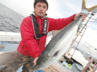| クリスマスイブです!!クリスマスにはブリ!? 秋のカンパチ、ネリゴシーズンにエンジン換装で1ヶ月もドックでした。 毎日凪続きでひじょ〜に悔しい思いをしたのですが、その後も不思議なほど凪が多いんです。 暖冬のせいでしょうか…? 人数揃わないけどエンジン最終慣らし運転兼ねて早上がりということで出航。 ブリ絶好調です!! |