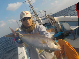 久々のイソマグロ。 10キロ超えると美味いと聞きますが… 別のお客さんから「塩コショウしてフライにするといいですよ。」と… 誰か感想まってます。(^^;) |