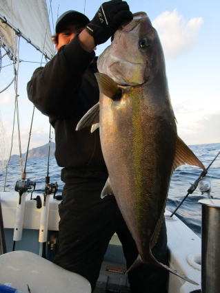 この方、お一人で、このサイズのカンパチ5本と良型スマで合計20〜30キロの釣果です。 |