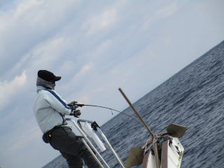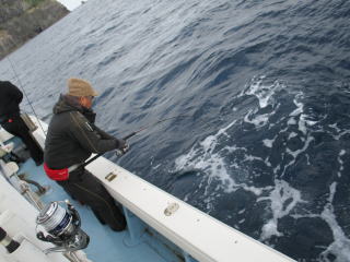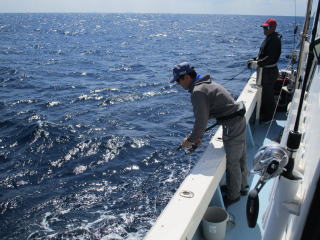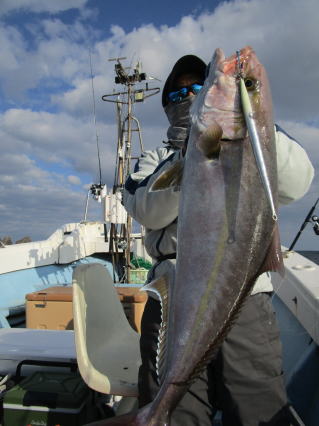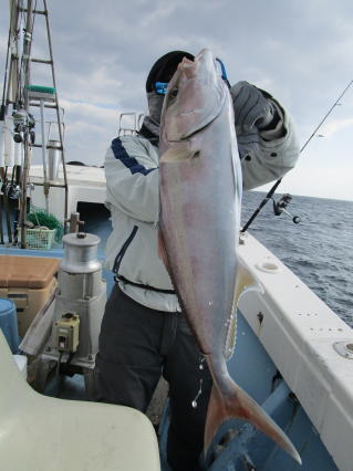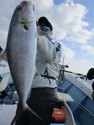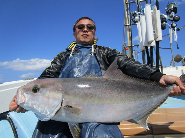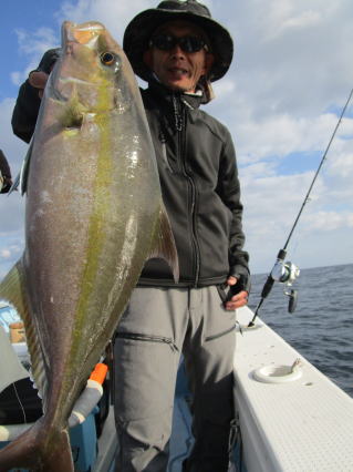 | HP更新していないので「最近、釣れてますか?」とよく問い合わせがありますが、 出てないんです!! 偏西風の蛇行という異常気象で高気圧が北の方を西から東へ移動するので等圧線が混んだままで沿岸は凪になっても南薩は凪になりません。 なので、 今年になってからまだ数回しか出航していません!! でも、平日に人数揃って感謝です。m(__)m で、久々の出航でしたが1投目から良型ヒット!! 数は多くないものの良型揃いでした。 |